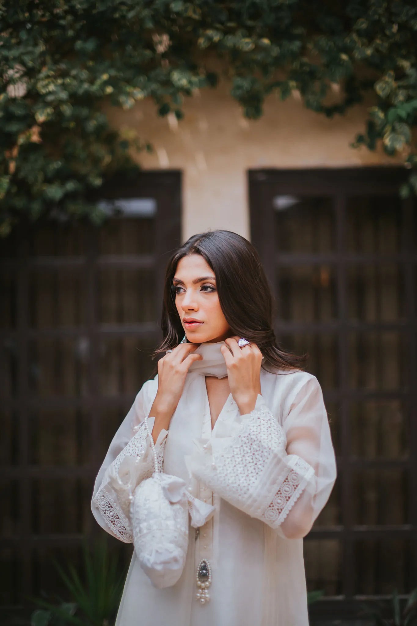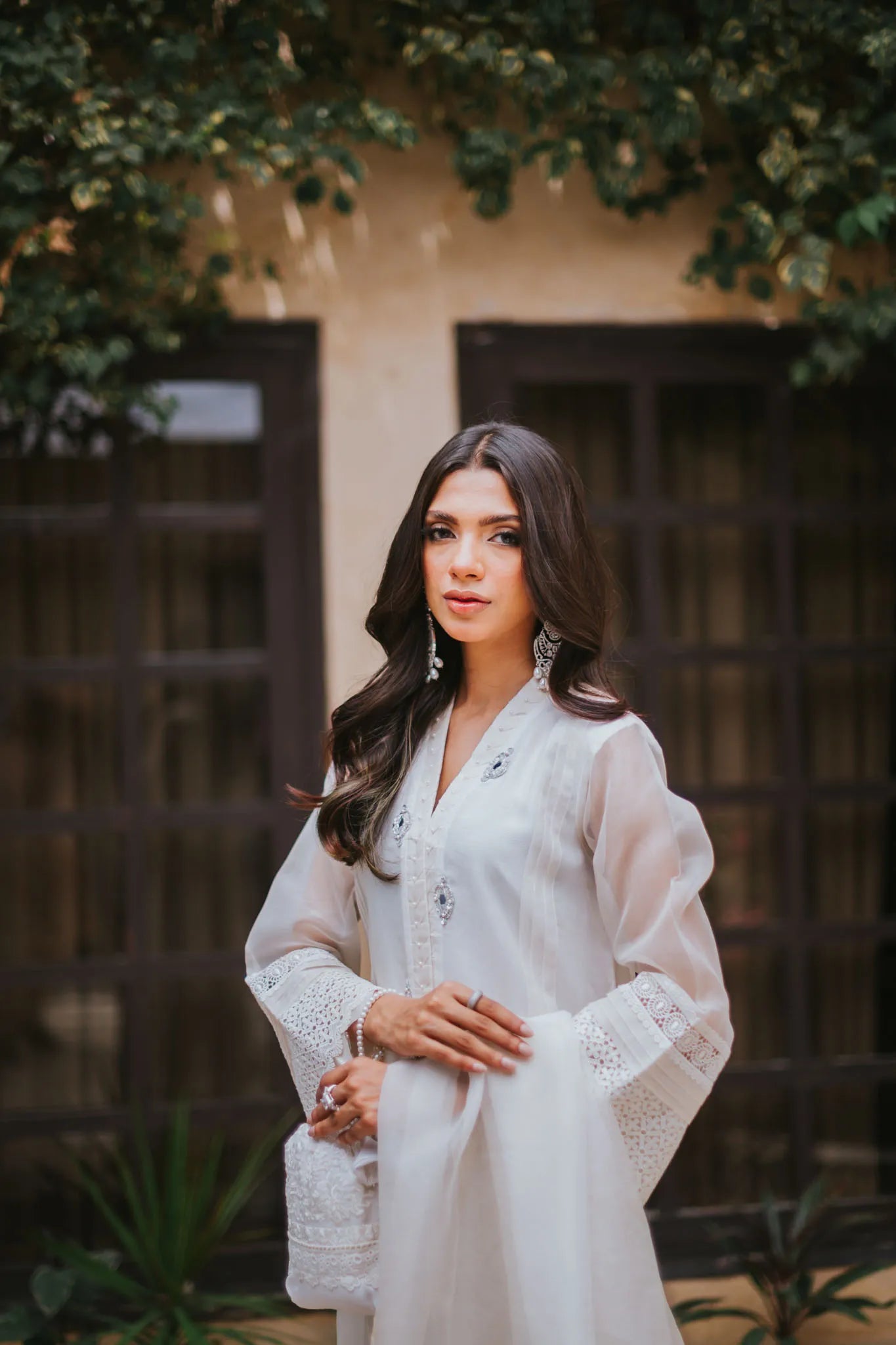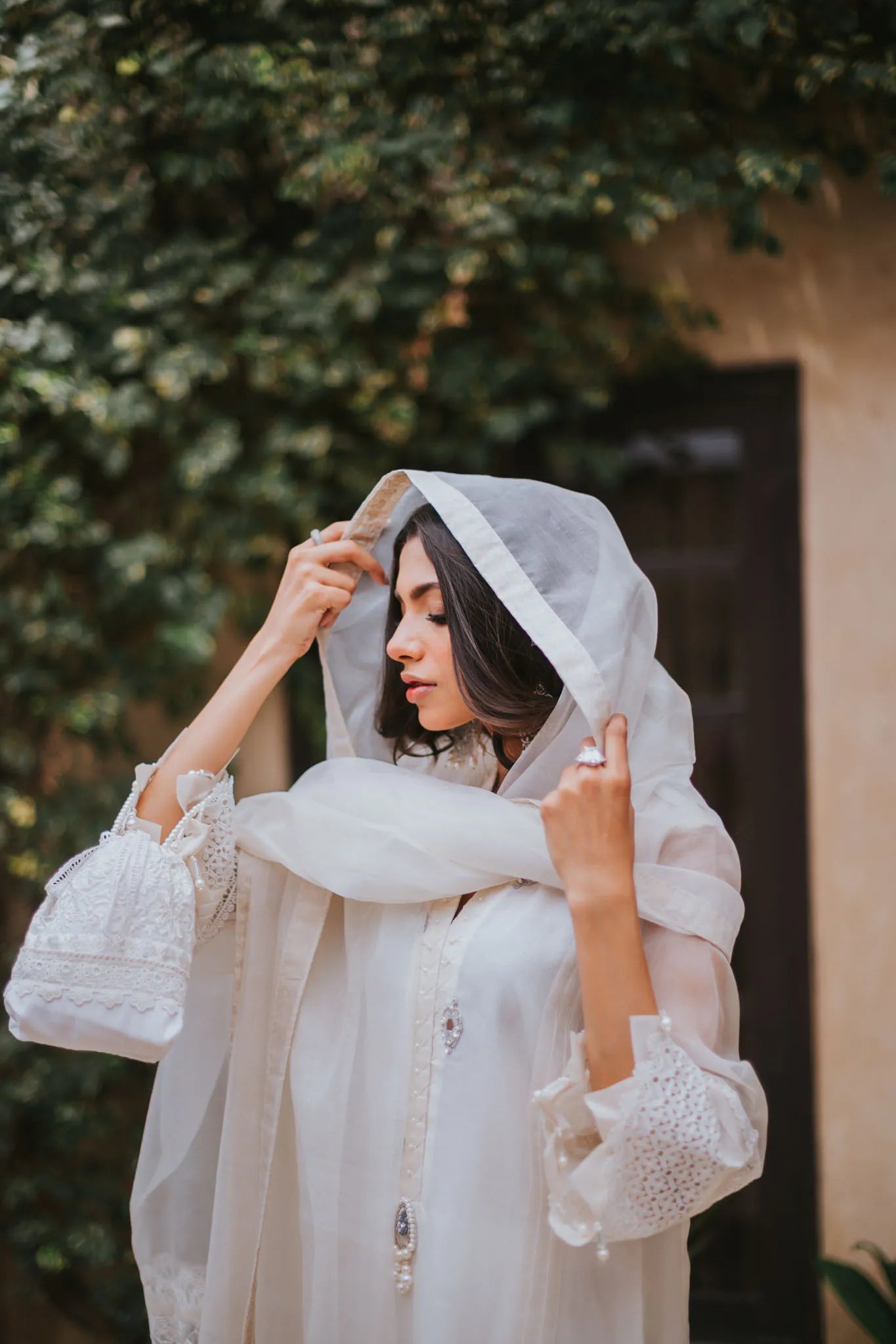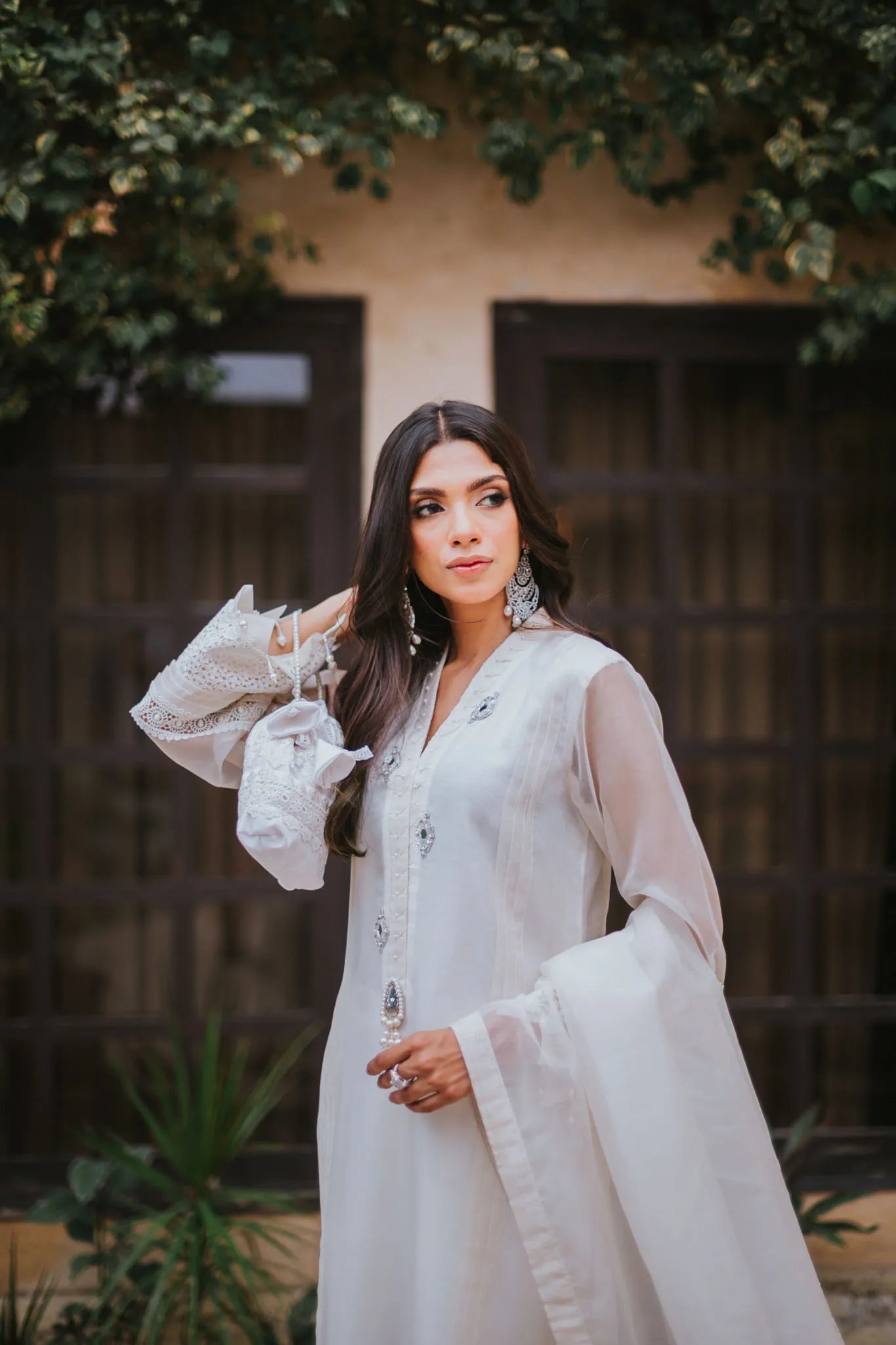Get ready to be the center of attention with a captivating, elegant ensemble featuring abundance of our signature detail. Cut from pure organza, this gorgeous ivory ensemble is going to be your perfect solution for all perfect occasions.
